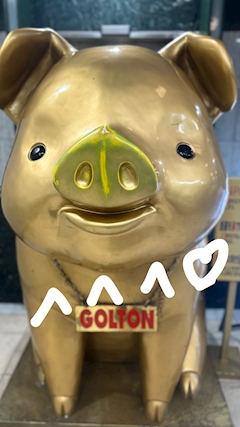 まなです! 今日います💚 明日もいます🖐🏻2連勤✨✨ 週末おやすみするので、普段あまり出勤 しない水木にINしました😻 見てください。 金の豚。名前は、GOLTON(ゴルトン)です。 この子は船橋にいます🐖 全部撫でてきた💚 耳を2人で片方ずつ撫でると幸せになれる らしいから、友達となでなでした これでわたしも友達も永遠の幸せを 得ることができます。 幸せを得たあとは、サイゼ行って お腹も満たした🤰🏼 わたしの高校時代1番仲の良かった 友達と会えてテンションMAX⤴️まで行った SNSで近況報告するよりも 直接会って話したい派なので 2ヶ月も開いてしまうと 開いた口が塞がらない 面白いことが起こって、友達に 報告しようーーー!って思っても 直接話したいからやっぱり 次に会うときにしようを 繰り返しすぎて忘れる。 報連相は忘れるな‼️です。 明日もいます💚💚💚 ばいばい😴💤