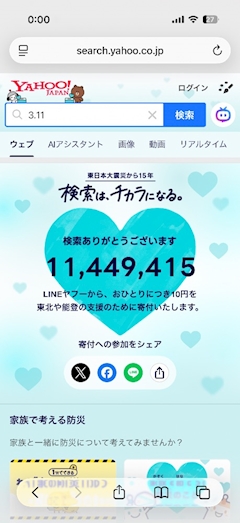 お疲れ様です Yahooでやってた募金?みたいなやつをやりたくて 0時なる1秒前とかにやったからギリギリ間に合った😭😭 みんなに勧めた時にはもう終わってました ちょっとなんか嬉しかった😂😂 きょうか