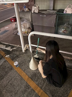 お疲れ様です かなり前の日に退勤した後にみかちゃんと外でお話ししてたんですけど 急にほうきとちりとり持ってきて掃除してました まるまっててかわいい😽💜 ※本当にたちながら隅々まで掃除してました わたしは吸殻を数本集めました^ ^ ゴミ拾ったらいいことあるって言われたから楽しみだなぁ🎶なにかあるかなぁ🎶 って楽しみに過ごしてたけど今日もアラームかけ間違えて一限からなのに寝坊しました 遅刻も間に合わなそうで二限から行ってきます😿 きょうか