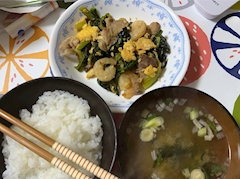 こんにちは! 本日の自炊です。 おいしそうに見えて、めちゃくちゃ失敗です。 小松菜を倍の量いれて、レシピにないエビも入れたから、調味料も倍入れたんですね。 この世のものとは思えないくらいしょっぱかったです🥲 自炊続けてるので、できるかなーってレシピ無視してみたらちゃんと失敗しました😇 日々精進 るか🍎