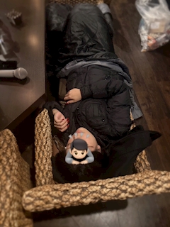 プリマドンナ限界労働界隈 恒例のイスを繋げて寝床にするやつ🪑 冬って異常に眠くない? そりゃクマも寝たくなるよね🐻ྀི コートかけてくれたり自分の上着枕にしていいよって言ってくれたり一応起きたら歌うかな…?でマイク添えてくれたりみんな優しくてナミダ 大きいありがとう🙌🏻 ❤︎ ⸝⸝ 20:00からいます(👍🏻ᴖ ·̫ ᴖ )👍🏻 週末いないので今週最後だよ〜 かえで